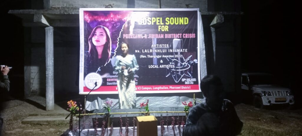 Pathienni zân inkhawm ṭin hin Presbytery KṬP huoihawtna hnuoiah Biekin tuol zâwlah Gospel Sound for Pherzawl & Jiribam Dist. Crisis hmang a ni a, hi hun a hin fiel bîka um Nk. Lalrinhlu Infimate le Local Artistes: Nk. Lalchawlkim, Nk Vasty, Pi Chhungneihching le Pi Ramengmawi hai a inthawk inpâkna hla ngainuom um tak tak el ngaithlak a ni a. Hi taka sûm hmu suok hai hi rambuoina leia harsatna tuok mêk Pherzawl le Jirbam Dist. ṭhangpuina dinga ti a nih.